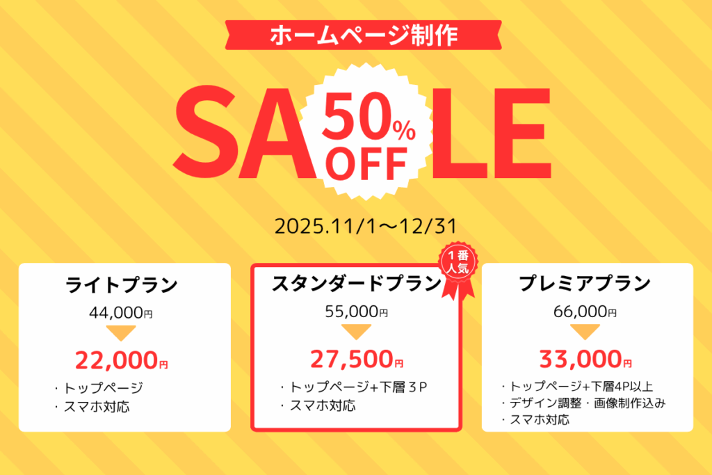 | 55,000円 トップページ+下層3P、スマホ対応・WordPress設置込み |